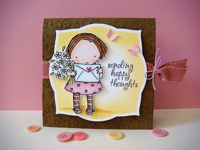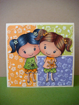 On this card I trimmed off the heads (ouch!) and tilted them slightly towards each other for a "best friends" card. I also sanded down the embossed background to make the flowers pop.