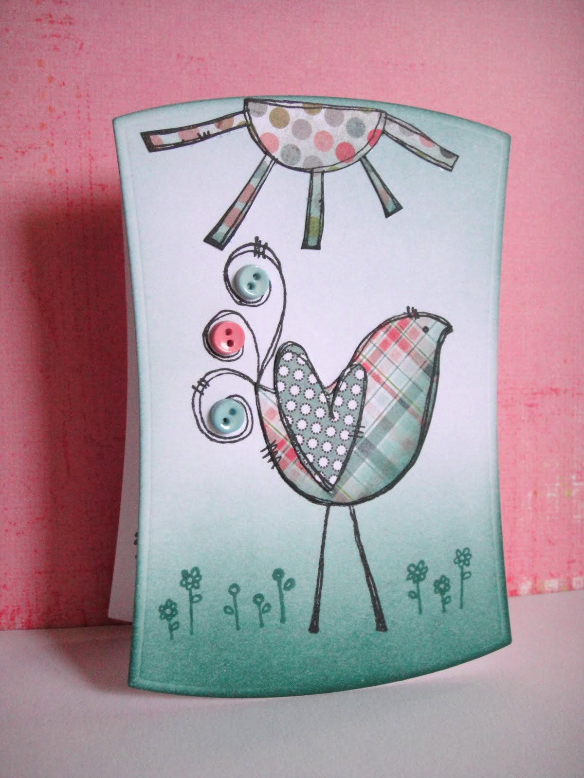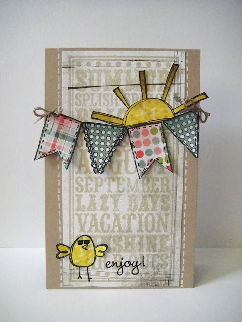 Here's my card using Lawn Fawn's Sew Lovely stamp set and My Mind's Eye papers. I took the route that Kristina shared on gathering papers with the challenge colors first. I was so happy to find perfect color matches in the Fly a Kite and Happy Go Lucky paper pads.