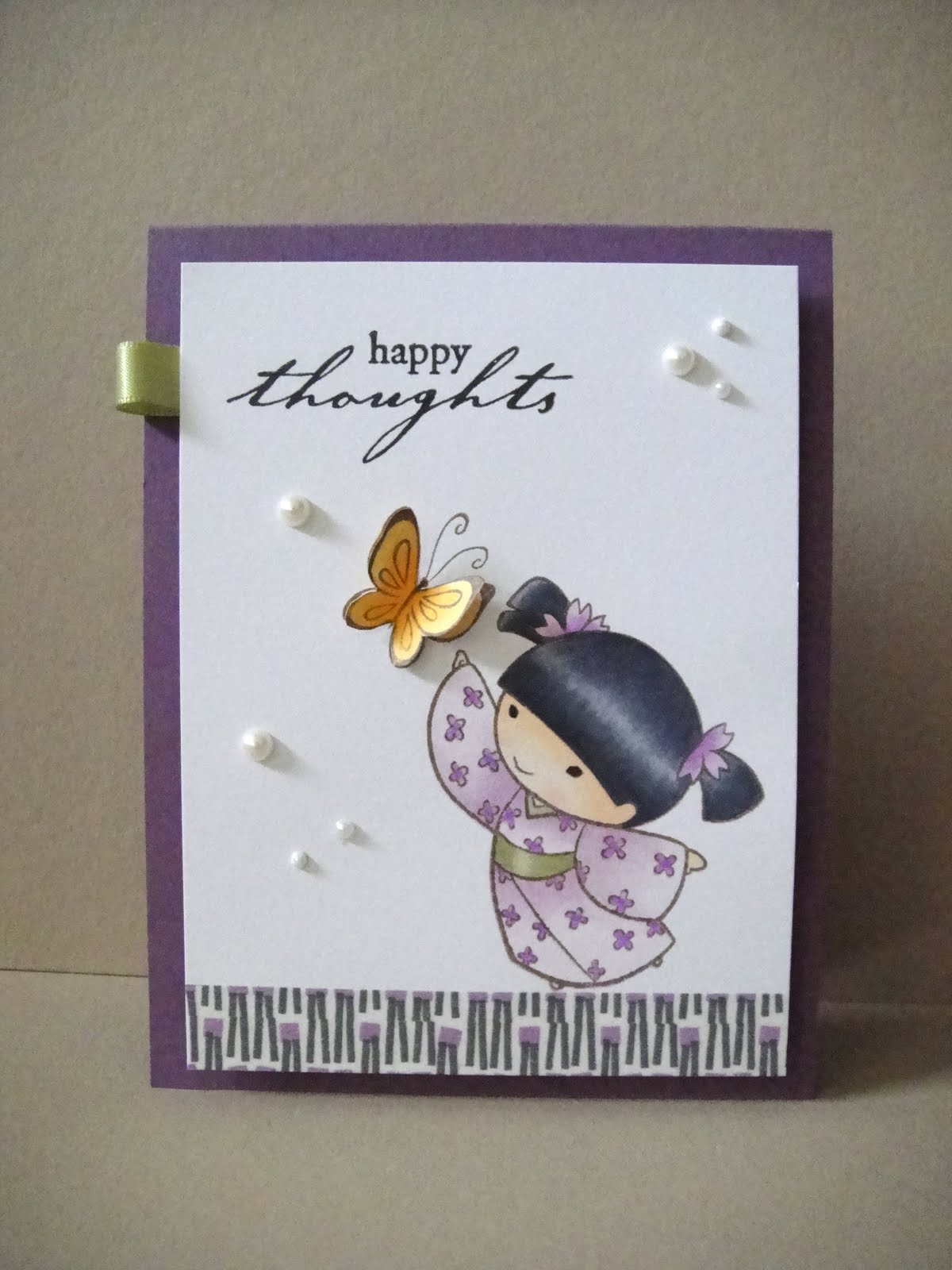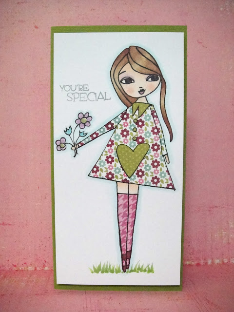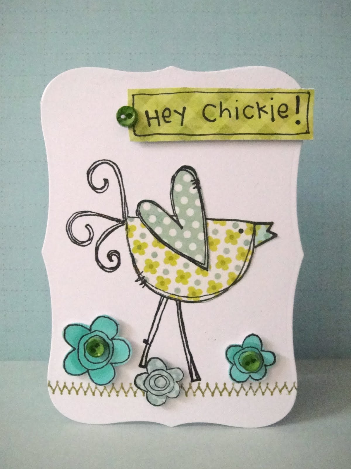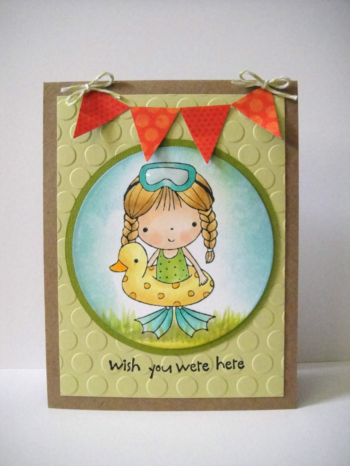 I added Glossy Accents to her beach ball and her eyes, and a bit of Liquid Pearls to the center of the flower. The sentiment on the tag is from The Greeting Farm, and some white seam binding and a blue button finished them off.