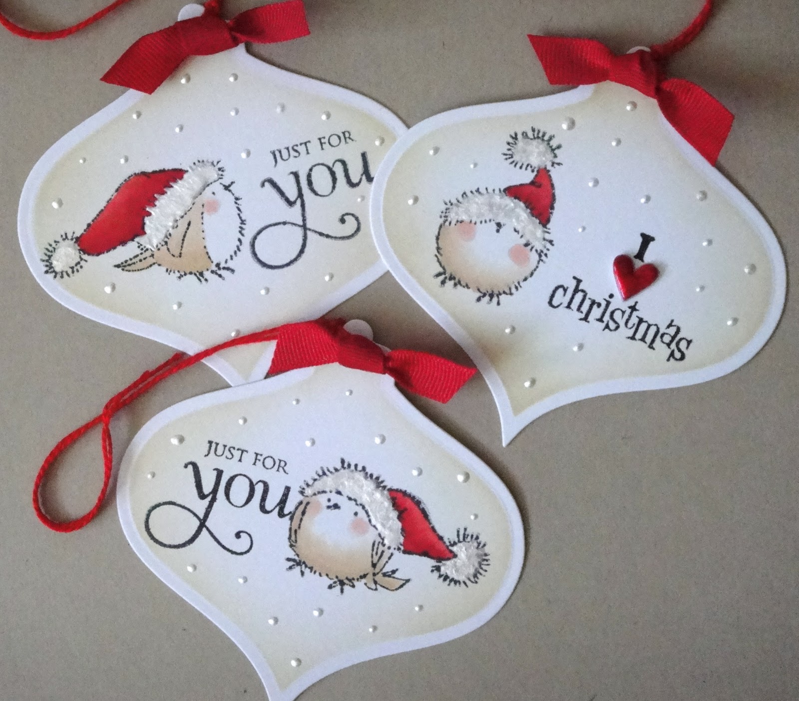 I knotted some red grosgrain ribbon and added a bit of twine and the tags were done.