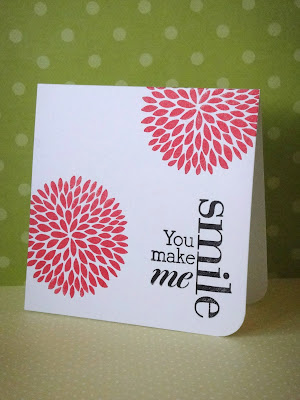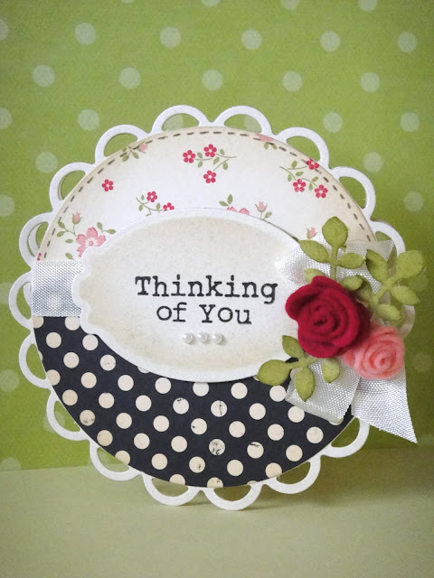 Here's my card for Cath. I made my favorite shaped card using Nestabilities, some October Afternoon patterned paper, felt roses, and a sentiment from Hero Arts.