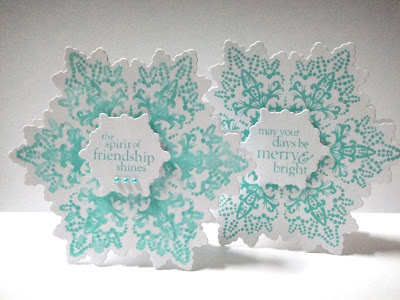 I also stamped a few snowflakes without spritzing, but I like the melty snowflake look.