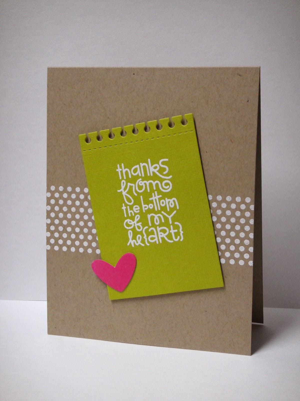 This is so sweet, with the little pink heart! I love the white dots and sentiment.