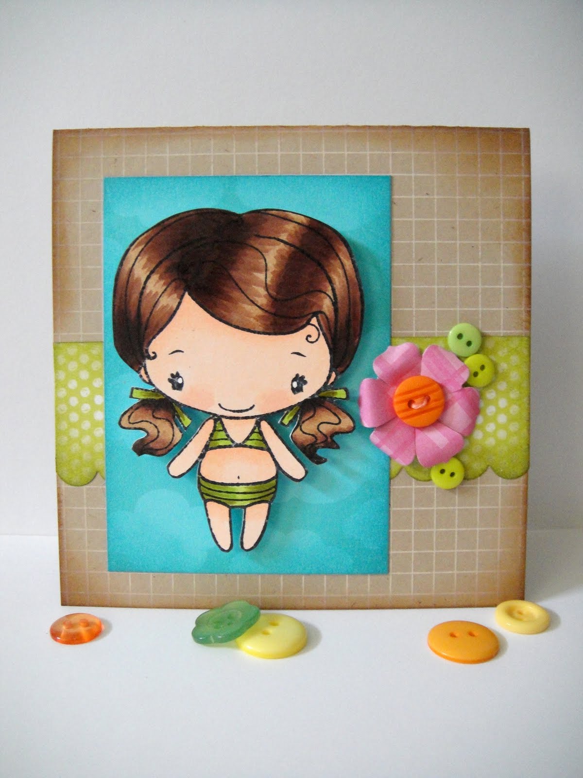 My second card is suitable for an older teen, like Sami. I used Chelsea from The Greeting Farm and created a 4x4" easel card. Hope she likes it!