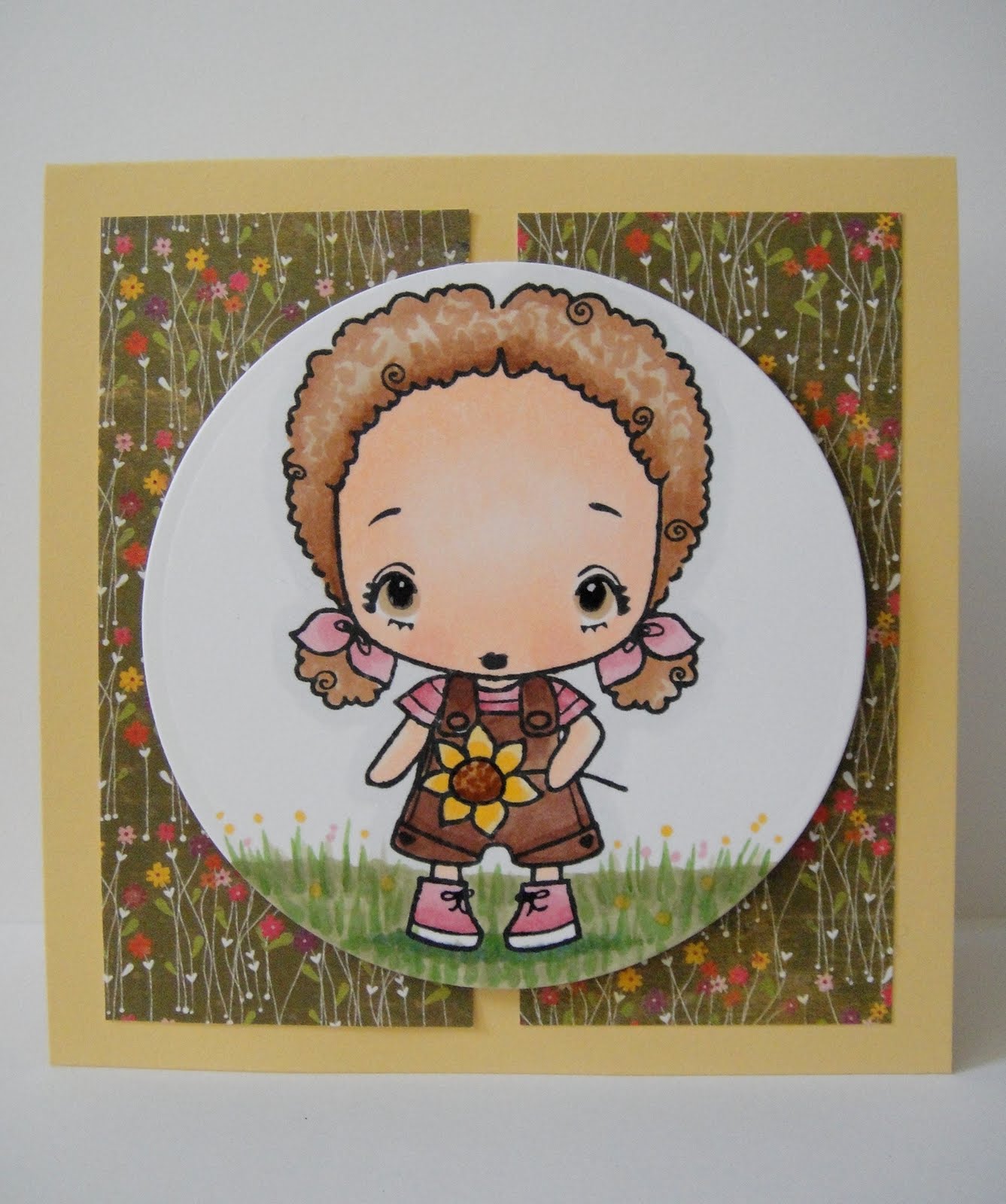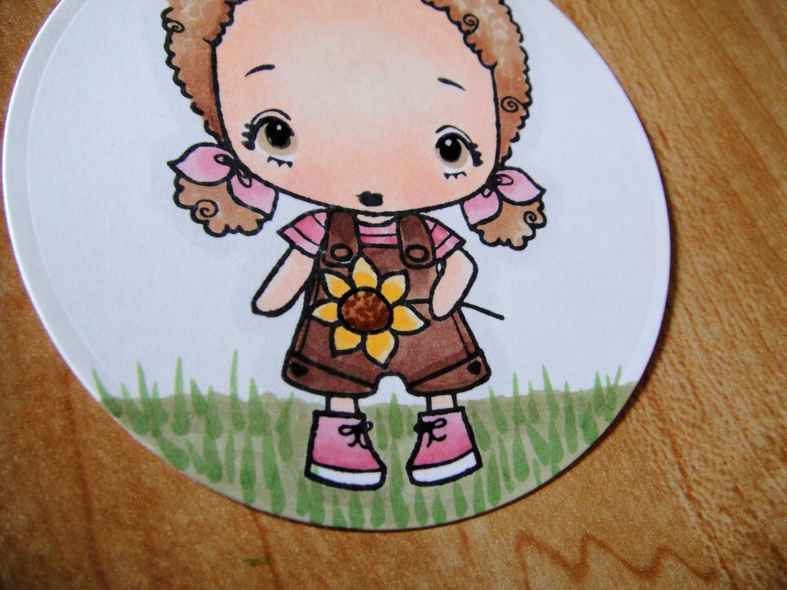 Okay, maybe that's not the best title for a post but I tried growing some grass on my card for the first time! I usually "ground" the image by coloring some shadow underneath but I wanted to try grass after seeing Kim's tutorial here.