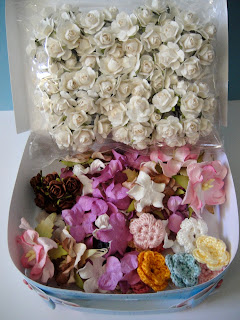 Lookie at what was inside the box--tons of floral goodness! I think I may never have to buy another flower for the rest of my crafting life!
