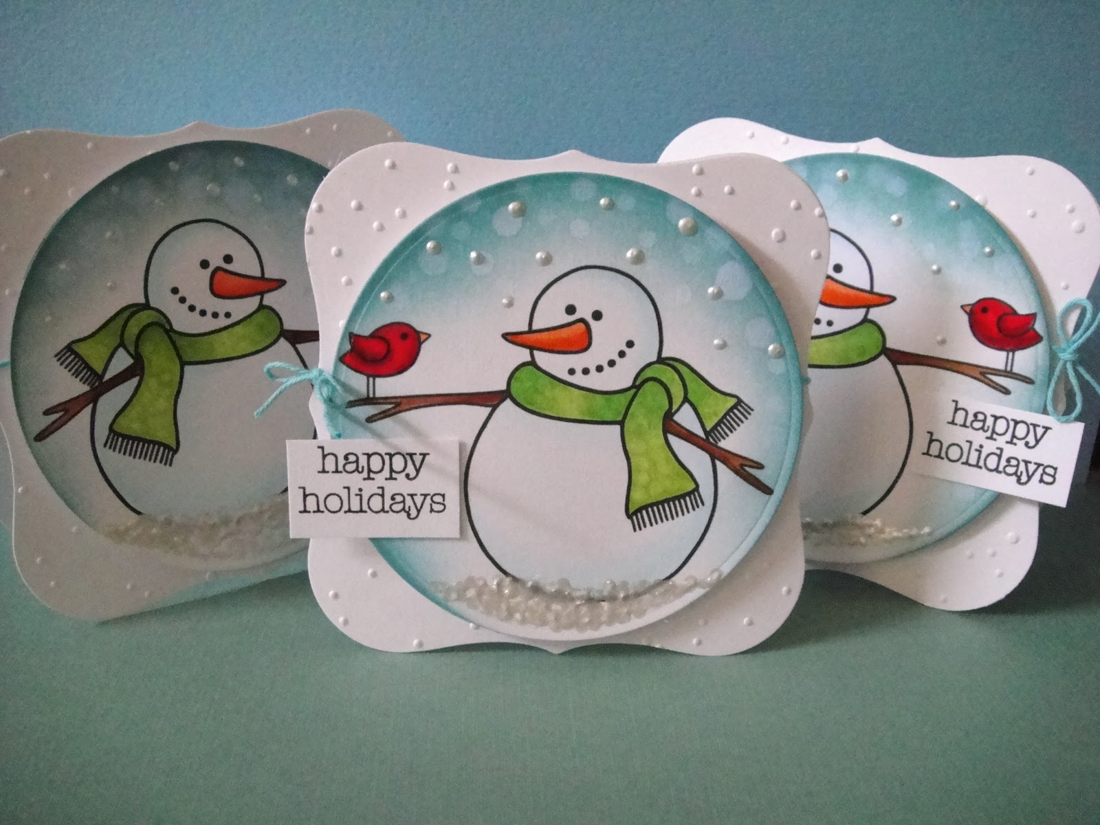 Just sharing a few more snowmen cards using Jane's Snowman and Bird. I kept it simple this time so I didn't have to use my sewing machine. The Nestabilities Label shape was embossed with a "snow" embossing folder, and I even flipped the snowman so he's facing to the left. Gotta love that about digis!