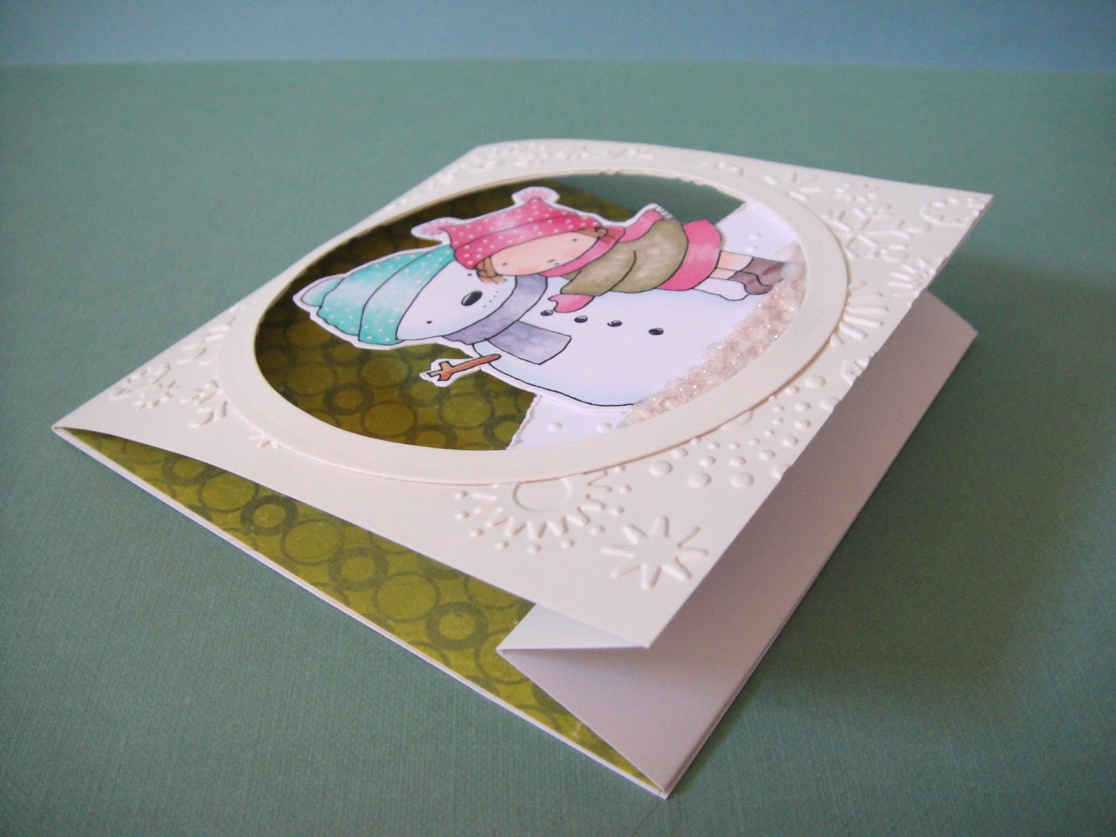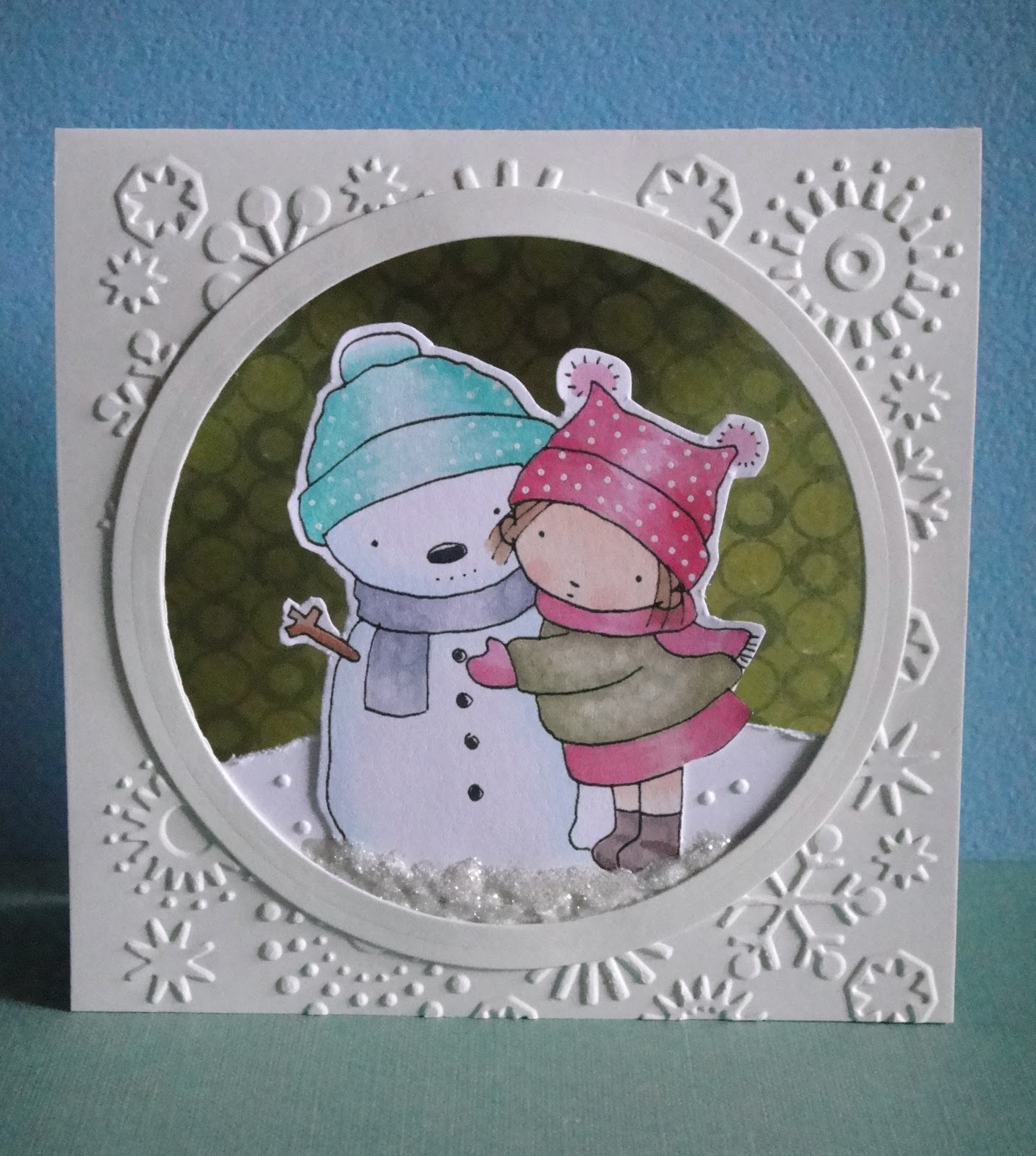 The "snow" on the ground was made with a Cuttlebug embossing folder which was a limited edition release from the UK.
