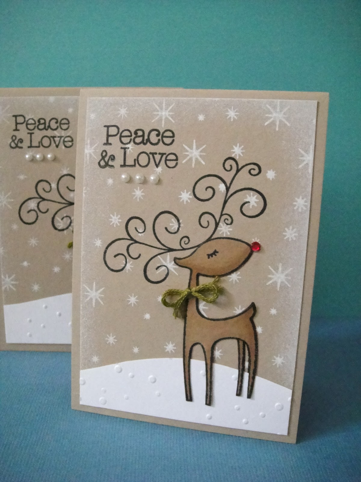 I colored a clear gemstone with a Copic marker since I didn't have any red ones for his nose, and tied a bit of floss around his neck to finish him off.