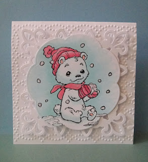 Whiff of Joy came out with their Christmas images and I couldn't resist this adorable little bear. I colored him with Copics and added a bit of sparkle on the snow with some Crystal Stickles.