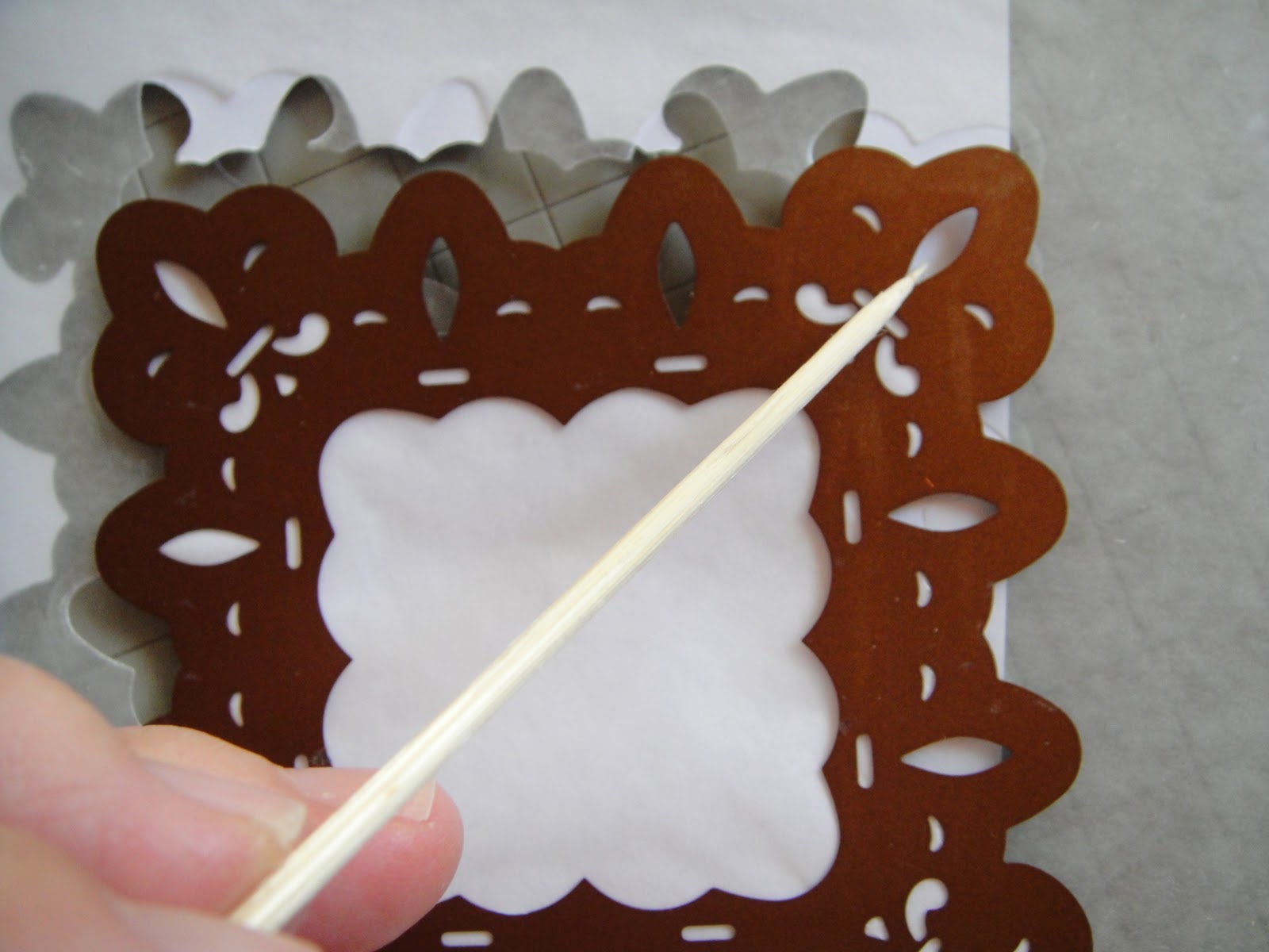 I also used a barbecue stick to poke out all the smaller pieces before sliding the stick under the die to help loosen the piece. Using a good quality cardstock helps, along with saying a little prayer.