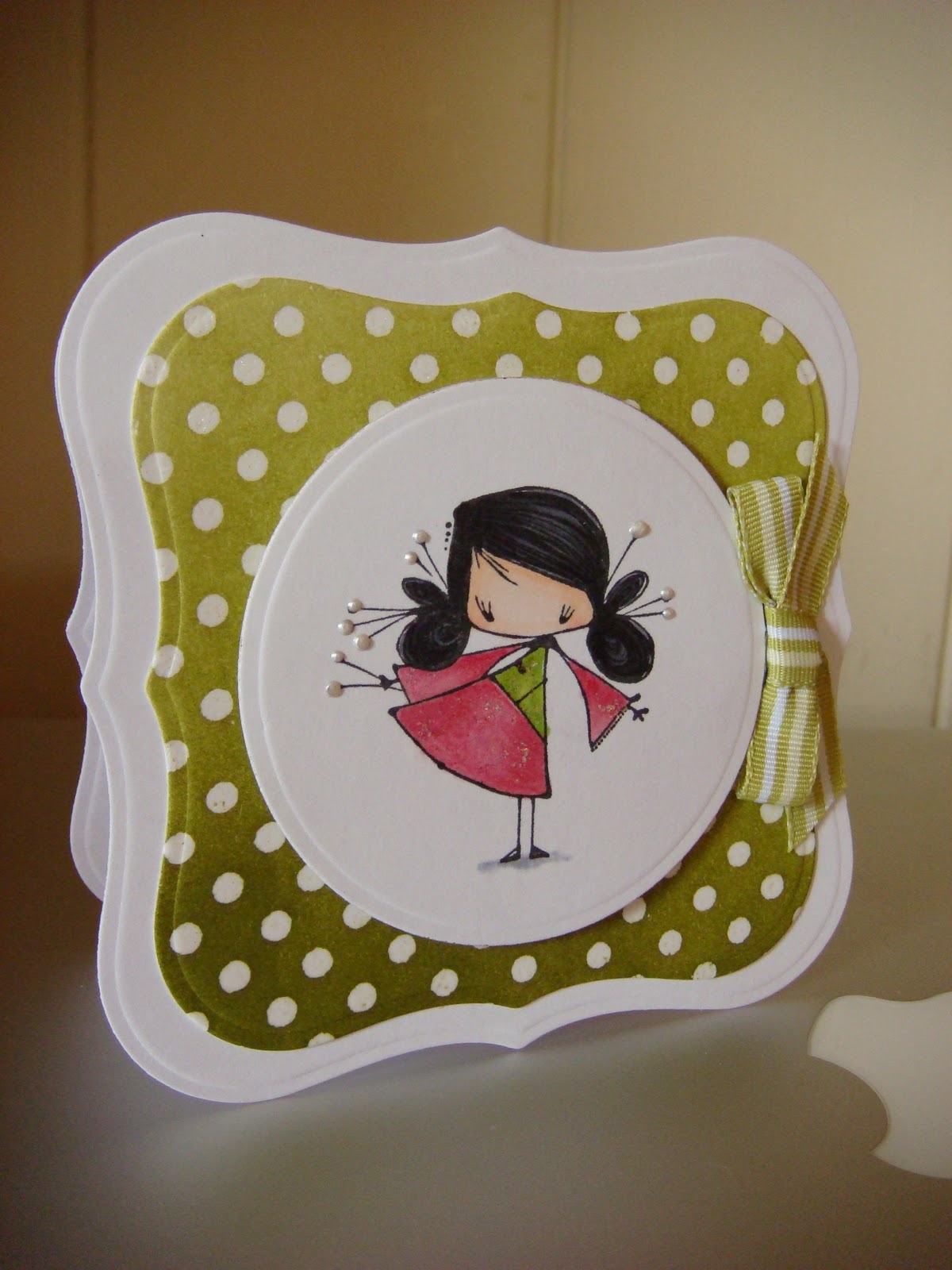Here's a card from Denise, one of the first local girls that I met. She was also the first stamper to introduce me to Dew Drops.
