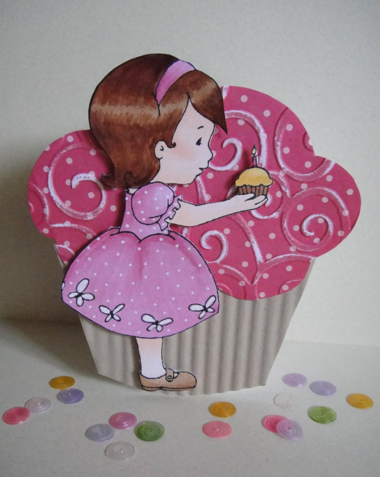 For my card, I used Birthday Baby Girl on a cupcake shaped card. The template was designed by Tania of SRM stickers and can be found here on her blog.