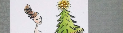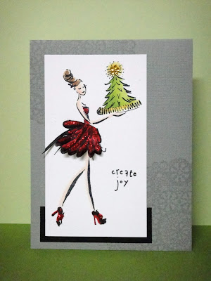 Here's a card I made using one of Penny Black's new holiday images called Christmas Usher. Elizabeth Allan has a great video tutorial here and I pretty much cased her card, but substituted the cardstock color and the corner images.