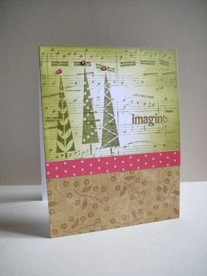 A quick post to share a card I made using the Music Background stamp from Hero Arts. Got my fingers inky over the weekend and did some ink distressing in different colors. I like the color combo of Peeled Paint with kraft and pink and found the perfect papers in my scrap pile.