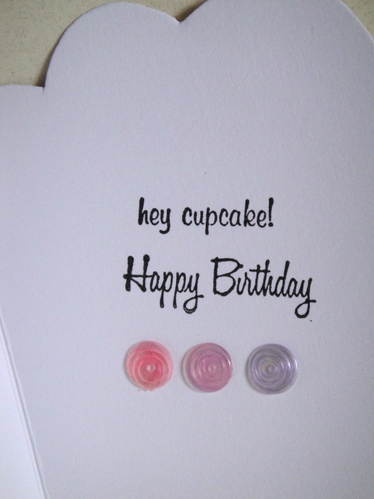 I Cuttlebugged and lightly sanded a swirly pattern on the cake portion, and ran the bottom part through a paper crimper to look like the cupcake liner.