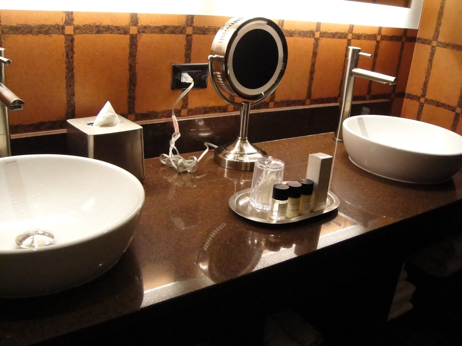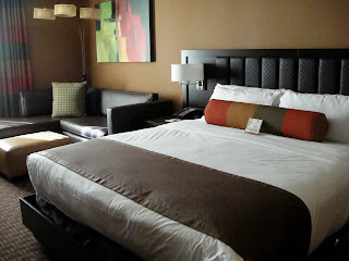 Here's some pics of our room at the Golden Nugget. I loved our room! It had a very Asian feel with the dark wood and glass.